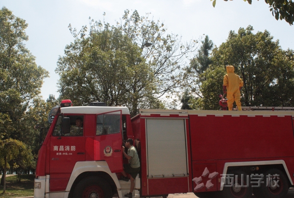 消防大队干警进江西省西山学校捣毁马蜂窝
