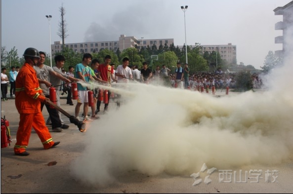2014年4月18日,江西省西山学校初中部初二年段举行了师生灭火和逃生疏散演练活动。小学部、高中部副班主任、食堂和超市等员工观摩了演练活动。