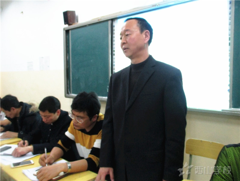 为全面掌握毕业班学生学习情况,有的放矢地进行复习备考,全面提高2016年初中毕业升学考试成绩,3月6日晚,西山学校初中部召开了初三第一次联考质量分析会,出席会议的领导有:西山学校副校长张太平,初中部校长陈江华、副校长曾亚奇、李春雨、初中部教务主任李有山、政教主任郝涛、初三年段长张建丛、副年段长陈卫平,会议由初三年段长张建从主持,初中部毕业班全体教师参加会议。