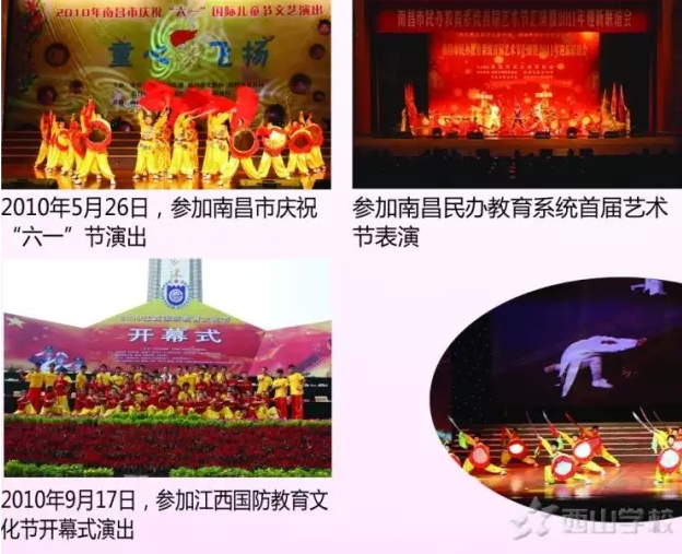随着2006年,西山武术队赴英国参加举世闻名的第57届爱丁堡军乐节,被誉为“完美的代表了中国”,轰动英伦,我校的武术节目已成为江西省各重大庆典活动不可或缺的保留节目,多次应邀参加央视节目录制,甚至到河南郑州中原腹地登台亮相,倍受省市高层领导的青睐;