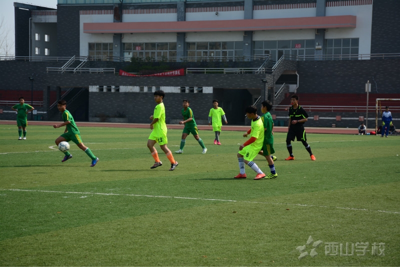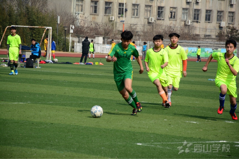2017年2月25日,2016-2017年度南昌市青少年校园足球联赛战火再燃,江西西山学校初中部足球队第一场迎战莲塘四中。开赛前,足球专家卞嵩对队员们进行赛前热身,给队员们讲解战术,激励他们要敢于拼搏、要勇往直前,队员们热情高涨,信心十足。经过双方激烈的对战,西山学校初中部以6:0的完美比分赢得比赛的胜利。
