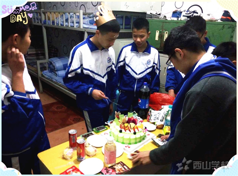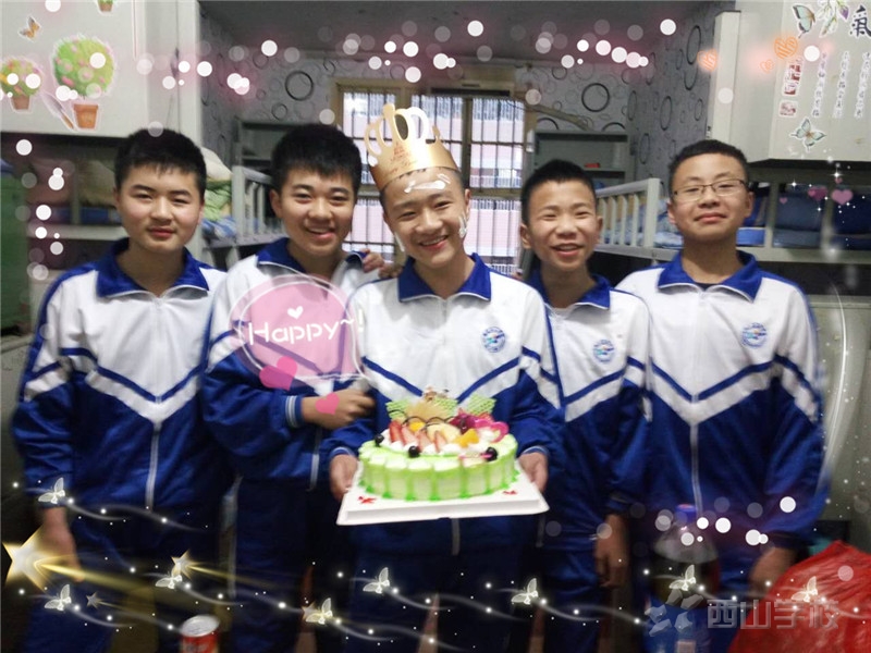 最近初二(5)班的曾政文同学就过了这样一个温馨、快乐的生日,舍友们共唱祝福歌,祝愿曾同学在以后的日子里学习有成,越长越帅!曾同学许下美好的愿望后,大家一边聊天,一边吃着美味的蛋糕,共同度过了一个美好的夜晚!